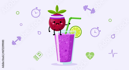 Open recipe book, pot with ladle, cute vegetables, flat vector illustration. Happy cartoon kohlrabi, broccoli, onion, carrot, pumpkin, garlic and red pepper with faces. Hand lettering. Cooking book.