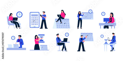 Ophthalmology set, flat vector isolated illustration. Doctor oculist patient characters. Chart for eye check up. Ophthalmologist eyesight examination, vision test. Optometry, ophthalmology diagnostics