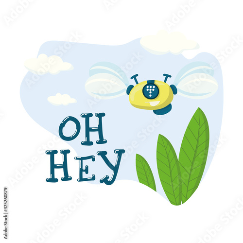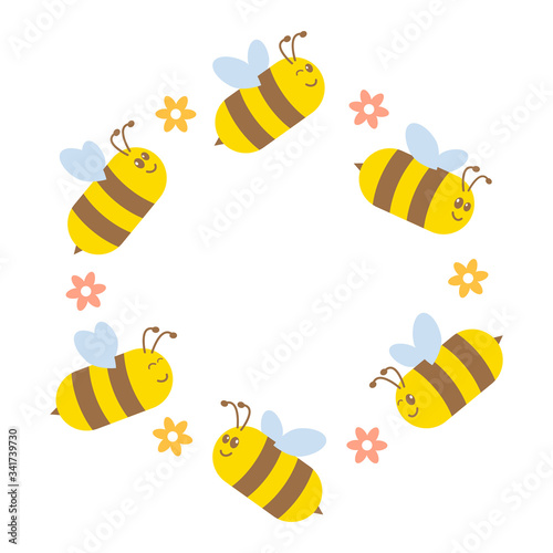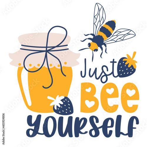 Organic honey icon. Vector sticker, label or logo with headline text, bee and sweet nectar in jar design isolated on white background
