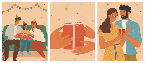 Osteopathy and massage therapy concept vector illustration. Hand drawn set of massage treatment posters. Professional male masseur, thai massage and spa, back pain treatment.