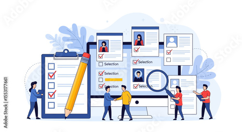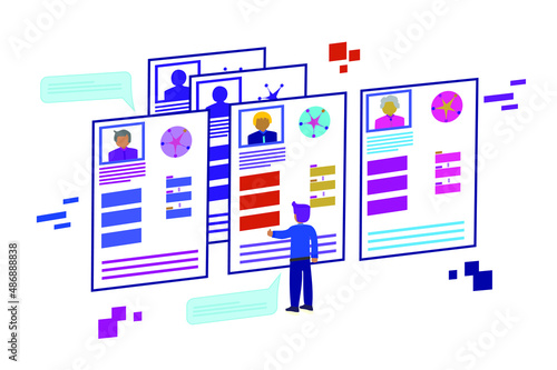 Osteopathy session and treatment. Tiny doctor characters examining scan of patient spine, flat vector illustration. Man having bone desease. Osteopathic medicine.