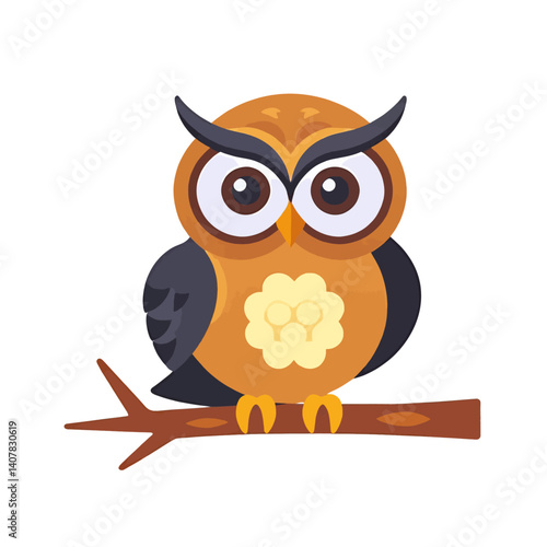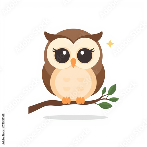 Owl sleep vector. Cartoon cute night bird icon illustration. Sleepy animal on tree branch. Funny character sleeping isolated on white background