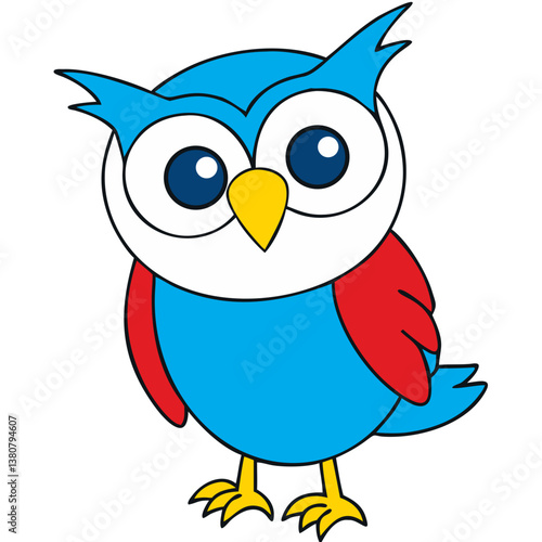 Owl superhero vector. Cute cartoon bird super hero icon illustration. Strong brave woodland character in funny costume, cloak isolated on white background for birthday greeting card design