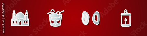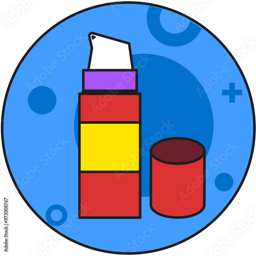 White blank paint packaging can, container mockup on display podium, paper cut background with color paintbrush strokes, vector illustration. Paint for home renovation ads template.