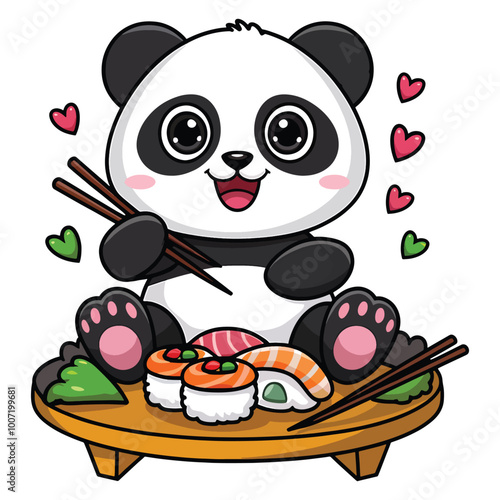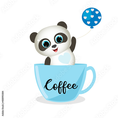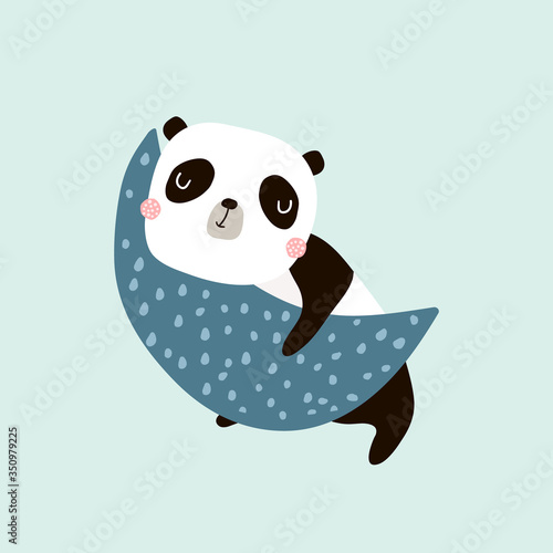Panda pirate vector. Cute bear sailor in boat icon. Funny baby animal character floating in ship illustration isolated on white background