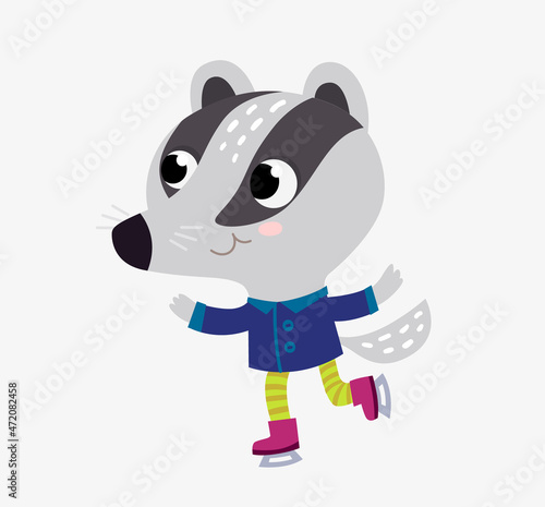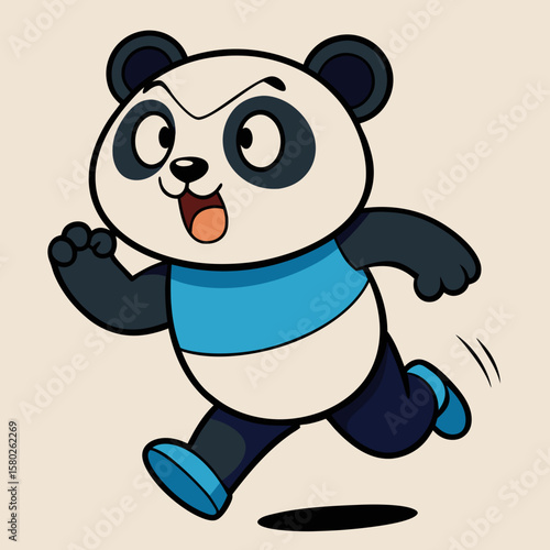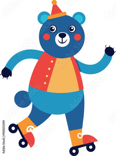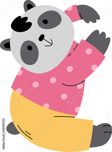 Panda roller skater vector. Cartoon funny bear sport character and fitness exercise icon. Kawaii animal skating isolated on white background