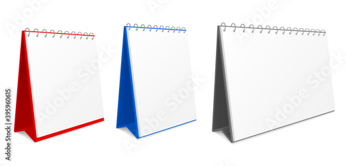 Vector realistic illustration of white blank table calendars isolated on white background. Desk calendar mockups set.