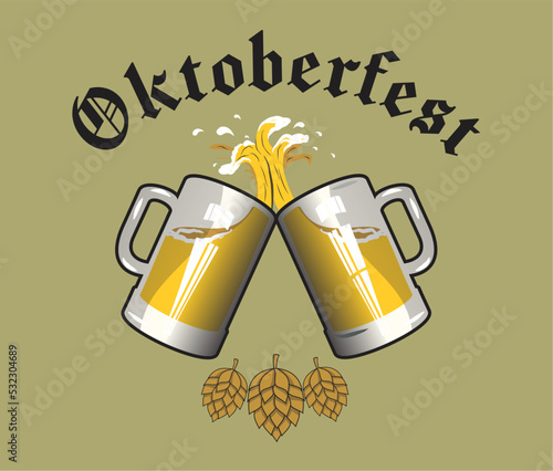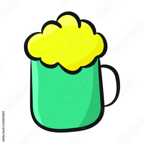 Paper cut beer mug with foam, wheat ears, hops and realistic aluminum can, vector illustration. Alcohol drink branding mockup, advertising.