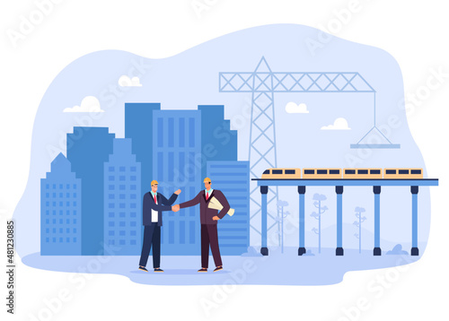 Paper cut craft style construction site with tower cranes, builder workers silhouettes, vector illustration. Building development. Construction industry.
