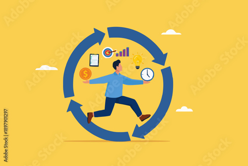 Paper cut craft style successful businessman winner silhouette holding trophy cup, vector illustration. Financial growth, earning, income, business achievements.
