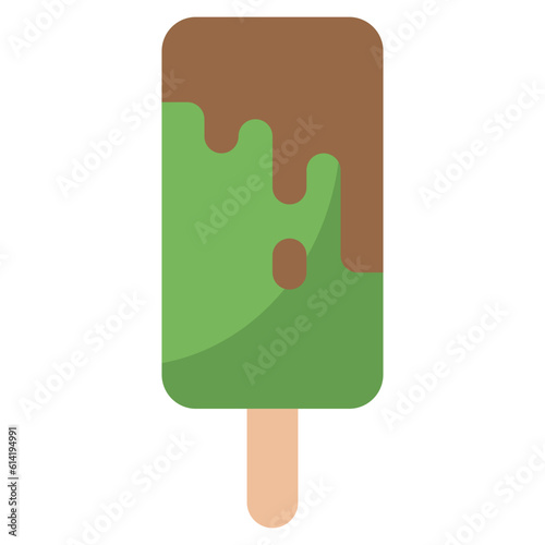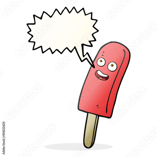 Paper cut ice cream on stick with strawberries, tropical leaves, realistic plastic packaging pouch, vector illustration. Fruit popsicle, summer sweet frozen dessert branding mockup, advertising.