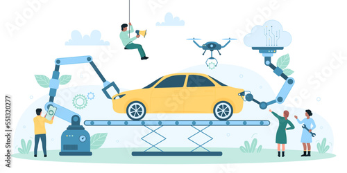 Young man was hit by car. Paramedic emergency medical team rescuing injured patient and transporting him to hospital on stretcher by ambulance car, vector flat illustration. Road traffic accident.