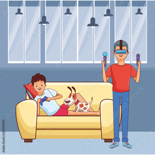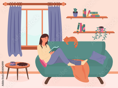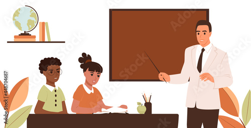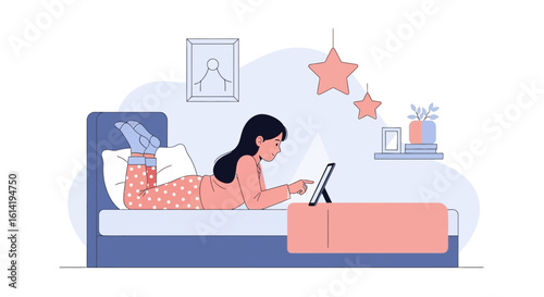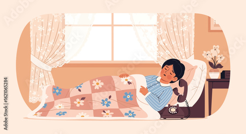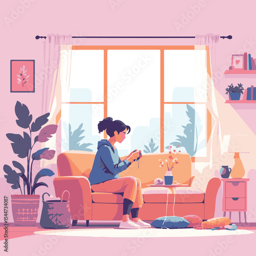 Happy loving mother combing her daughters hair, vector flat illustration. Happy childhood and motherhood, parental love and care for children, parent child relationship.