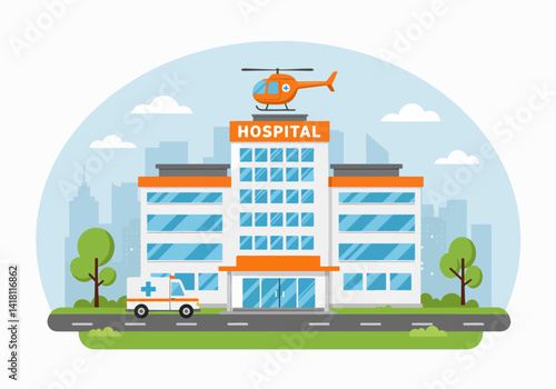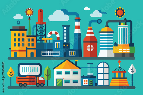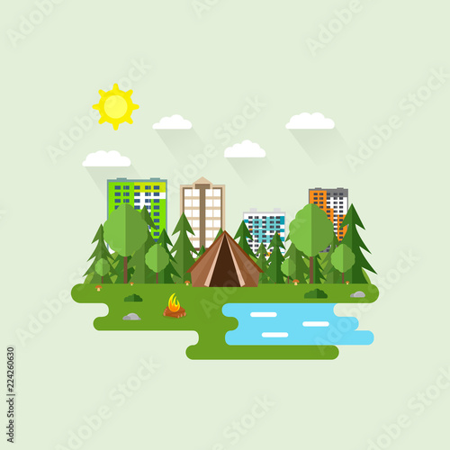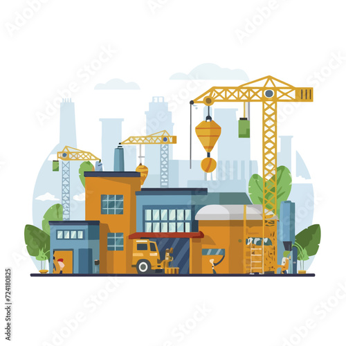 Vector illustration of car park with parked automobiles, tow truck evacuating car, parking assistant in guard booth, driver receiving parking ticket. Flat style design elements.