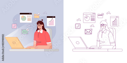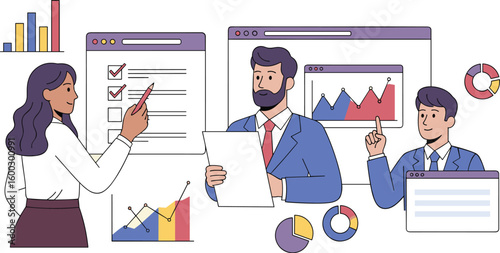Pawnbroker, jeweller looking at luxury diamond gemstone standing at display counter with antique vases, gramophone, flat vector illustration. Pawn shop services.