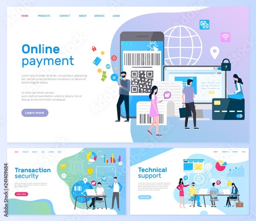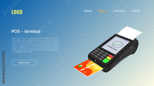 Payment successful vector website template, web page and landing page design for website and mobile site development. Pos terminal with tick mark on screen, credit card, receipt. Complete transaction.