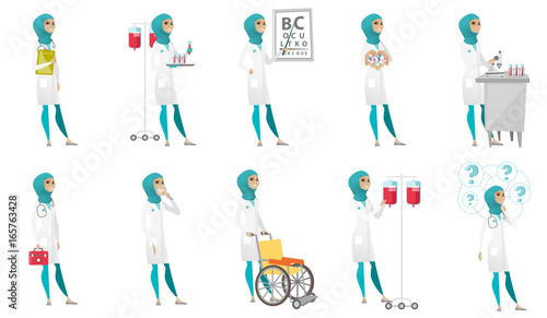 Pediatrician doctors and patients, flat vector isolated illustration. Parents with kids visiting doctor. Physician examining kids. Children medical checkup. Medicine and health care.