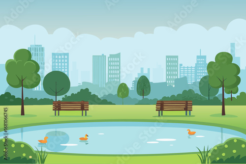 Vector illustration of father playing football with his son, couple boy and girl running together while holding hands. Flat style design.