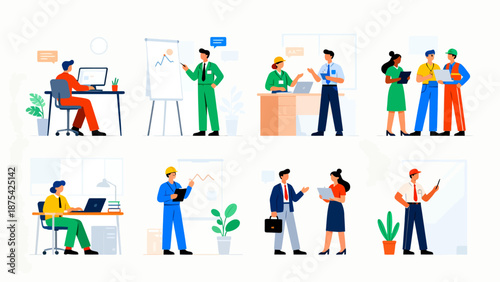 Group of people enjoying their hobbies vector flat illustration. Photography painting, dancing, playing guitar, bonsai, sewing, sculpting, cake making and decorating, fishing.
