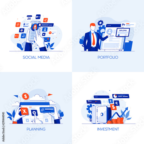 People are building business online. Teamwork concept. Vector web site design template. Landing page website concept illustration.