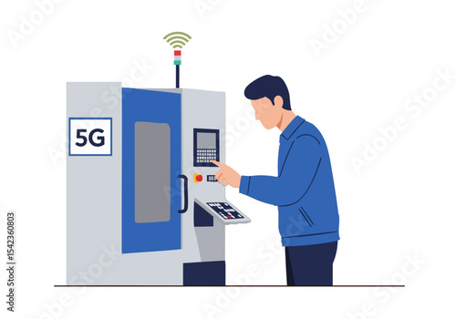 Male characters buying coffee drink from coffee vending machine, flat vector isometric illustration. Vending machine technology.