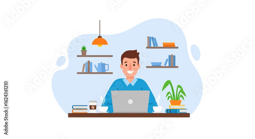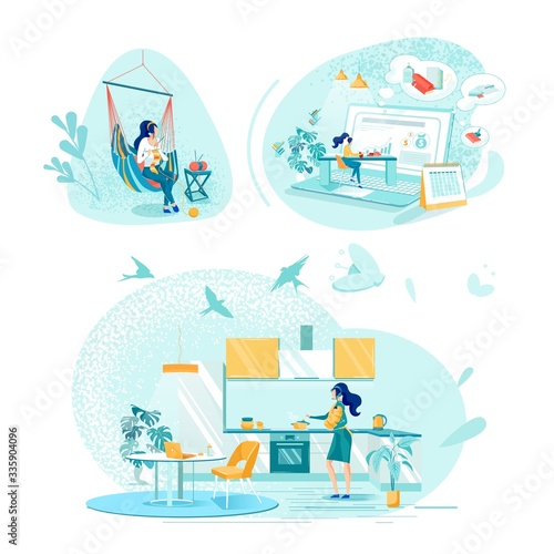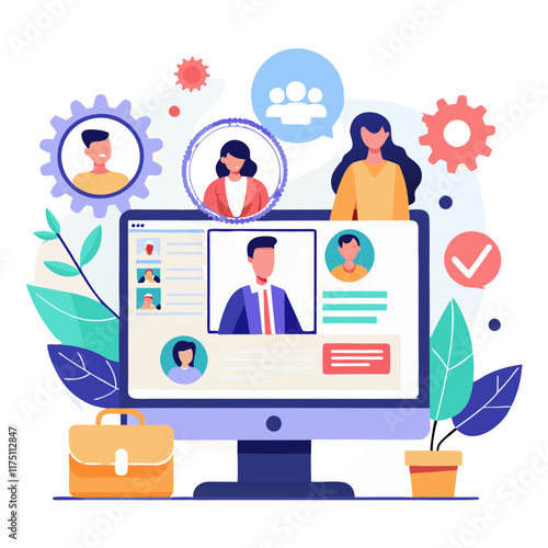 People celebrating birthday party, anniversary, festive event remotely from home, flat vector illustration. Self isolation. Online party with friends, video conference technology.