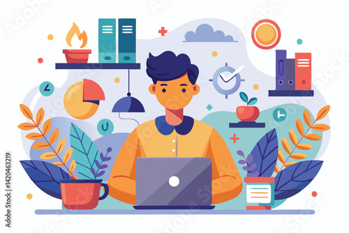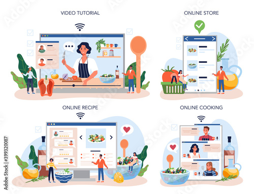 People celebrating birthday party, anniversary, festive event remotely from home, flat vector illustration. Self isolation. Online party with friends, video conference technology.