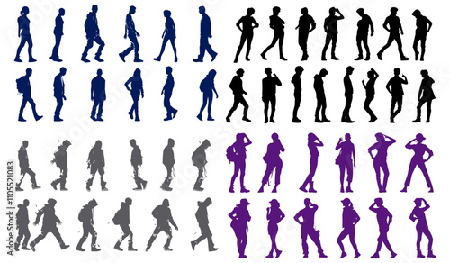 People characters dancing alone colorful silhouette isolated set. Man, woman, children of different age having fun, moving to music, partying and clubbing vector illustration