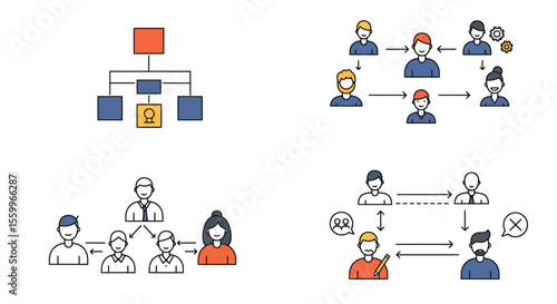 Group of business people discussing project startup, company strategy, vector flat top view illustration. Boardroom meeting, conference, brainstorm, teamwork, handshake.