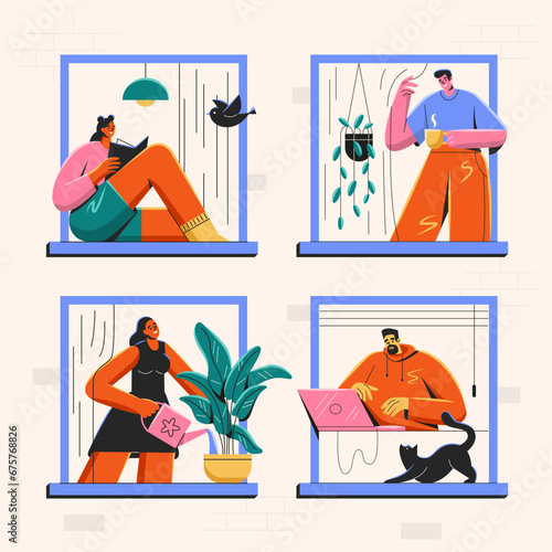 People drinking wine, whisky, beer and tequila vector set. Different national beverage for lunch or dinner, friends online meeting on weekend illustration. Traditional drinks concept