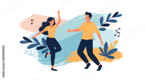 People eating vegetarian food, fresh vegetable salad, flat vector illustration. Natural organic food, vegan diet, vegetarianism, healthy lifestyle.