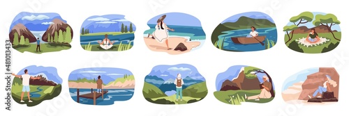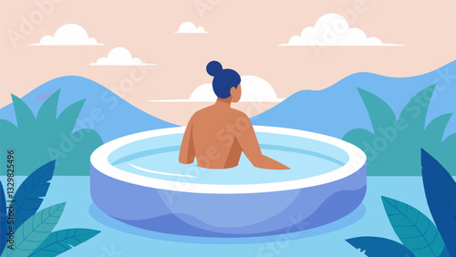 Hot springs pool. People enjoying thermal spa water, flat vector illustration. Happy young women taking outdoor bath. Onsen, japanese natural hot springs resort. Relax, recreation.