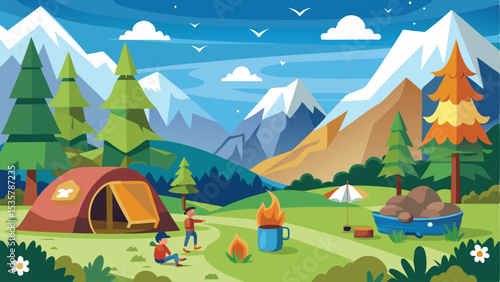 Hot springs pool. People enjoying thermal spa water in winter, flat vector illustration. Mountain onsen, japanese natural hot springs resort. Relax, recreation.