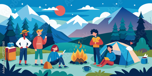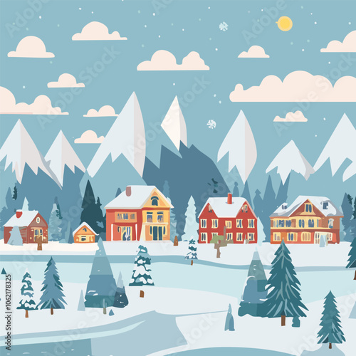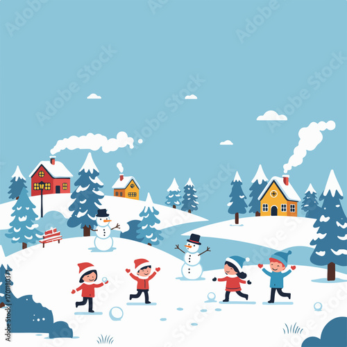 Hot springs pool. People enjoying thermal spa water in winter, flat vector illustration. Mountain onsen, japanese natural hot springs resort. Relax, recreation.