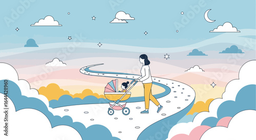 Hot springs pool. People soaking in thermal spa water in snowy mountains, flat vector illustration. Onsen, japanese natural hot springs resort. Relax, recreation.
