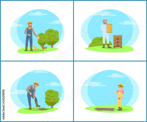 People enjoying their hobbies vector flat illustration. Guitar playing, sculpting, dancing, photography or video shooting. Music, arts and craft hobbies.