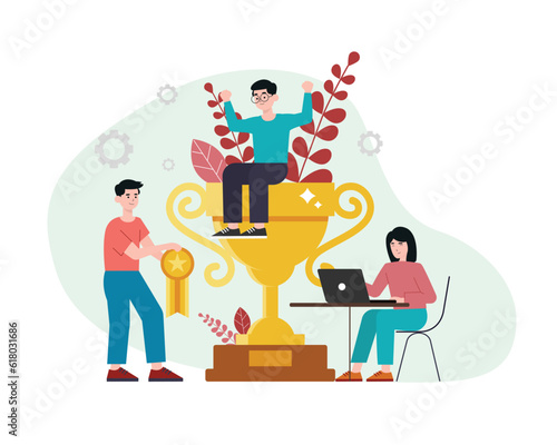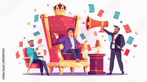 People giving gifts for customers online shoppers, vector flat illustration. Online reward, digital referral program, promotions and free bonus giveaways, internet store marketing.