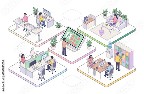 Smart farming, flat vector isometric illustration. People growing fresh herbs and veggies in small tabletop greenhouse or terrarium. Indoor garden. Smart intelligent combine harvester harvesting wheat
