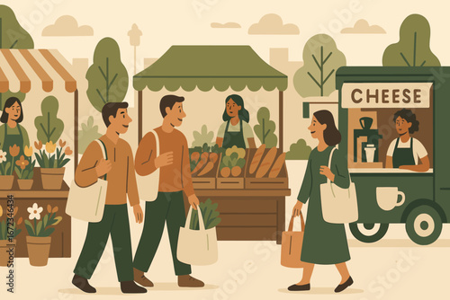 People wearing Halloween carnival costumes walking in city park, flat vector illustration. Happy Halloween party celebration. Trick or treat.