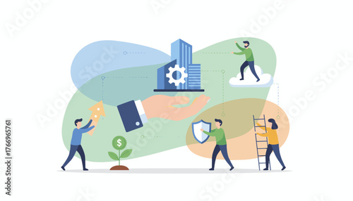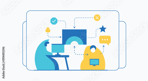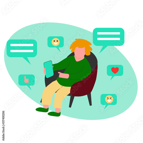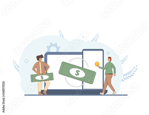 Dialog speech bubbles with people using laptop computers, reading books inside, flat vector illustration. Business dialog, communication, online chat, conversation.