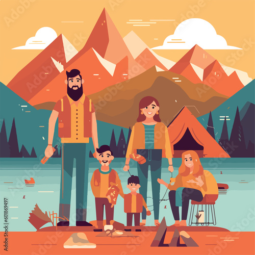People in oceanarium scene with parents and kids, loving couple watching marine animals in aquarium tank. Touristic attraction, weekend leisure activity underwater world museum vector illustration
