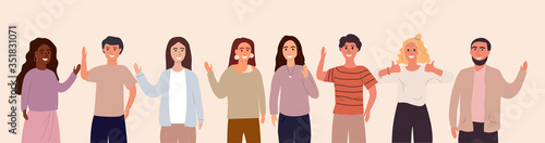 People in stress and social pressure vector illustration. Society attack female victim. Crowd opinion as opposite of individual, human abuse or harassment. Social issues concept