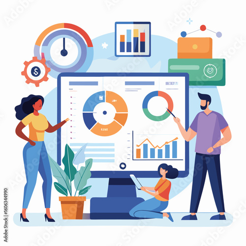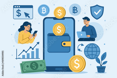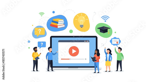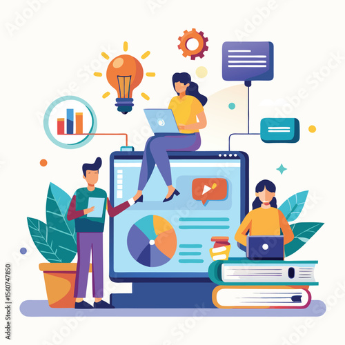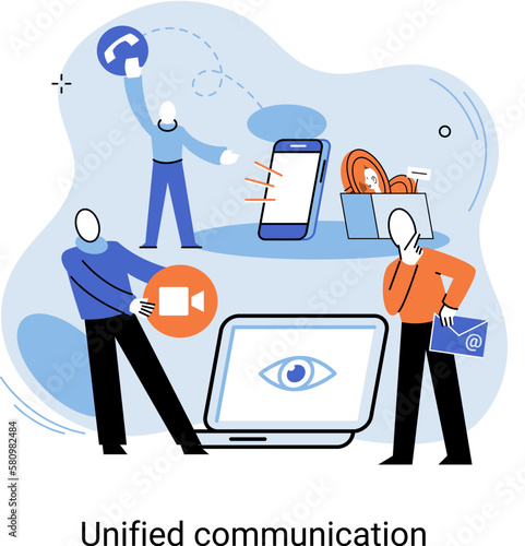 People listening to music, radio program or podcasts online, flat vector illustration. Podcasting.
