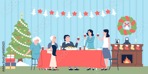Vector illustration of saleswoman selling vegetables to buyers man, woman, family at greengrocery. People making purchases concept, flat style design.