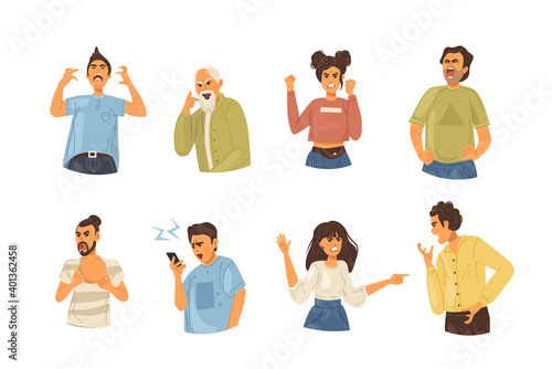 People closing eyes, mouth with hands and plugging ears with fingers, ignoring others and paying no attention to companion, flat vector isolated illustration. Disregard, disagreement, refusal, denial.