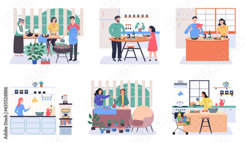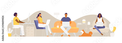 People of different occupations and professions at workplace, flat vector illustration. Doctor pediatrician, veterinarian, scientist, news anchorman, massage therapist, radio host, office worker.