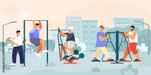 Cartoon people opening doors, entering, exiting vector scene set. man and woman of different age at doorways and entrances illustration. Characters going through house and office entries