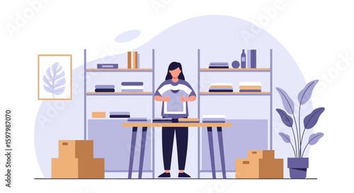 People packing cardboard box with home stuff. House move and relocation service vector posters set. Man carry carton box to truck. Woman packs books to cardboard box.