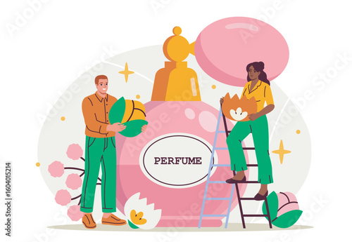 People painting Easter egg, flat vector illustration. Preparation for happy Easter spring holiday celebration.