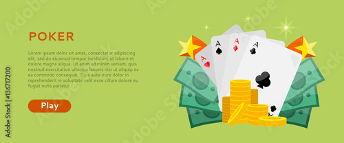 People playing poker game landing page design, website banner template set, flat vector illustration. Green poker table, playing cards, chips, dice. Casino gambling.